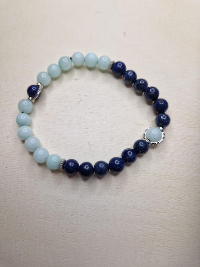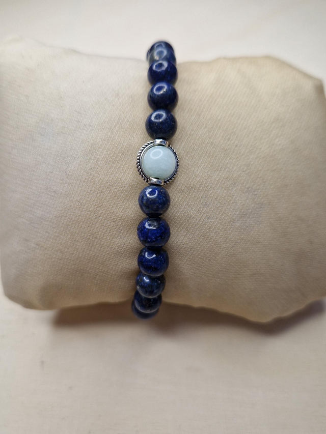 Lapis-Lazuli. Responsabilité pour soi-même. Favorise l'authenticité et aide à conquérir la maîtrise de sa propre vie. Favorise discernement et intelligence, aide à communiquer avec les autres. Abaisse la fièvre et la tension.