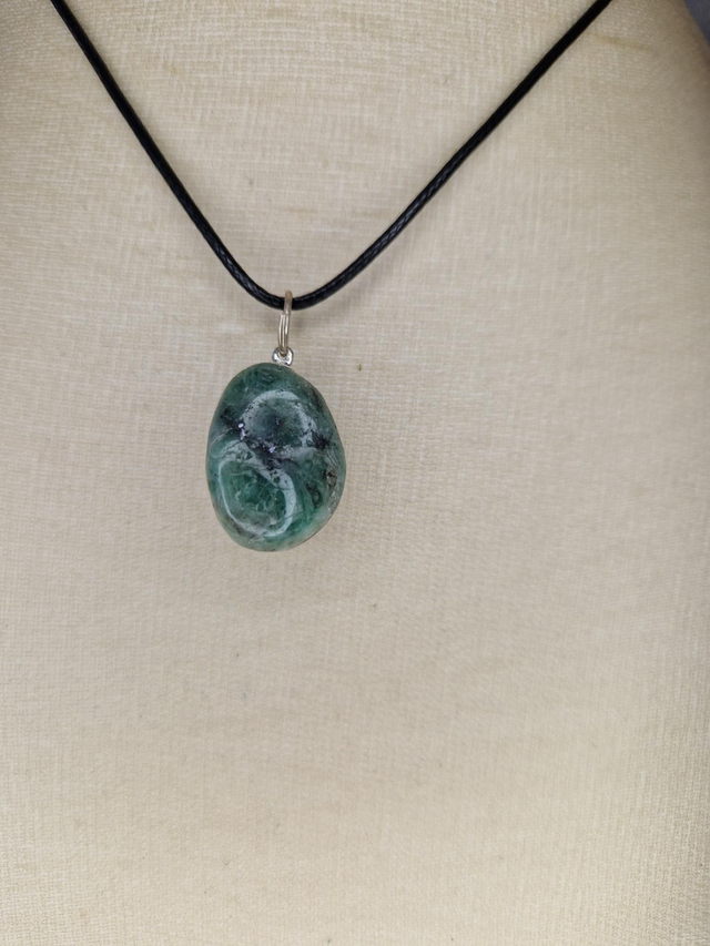 Emeraude. Trouver sens des choses. Favorise harmonie, justice, régénération, repos. Soutient recherche, réalisation d'objectifs. Apaise sinusite, maux de tête, épilepsie, maladie oculaire, cardiaques, intestinale.