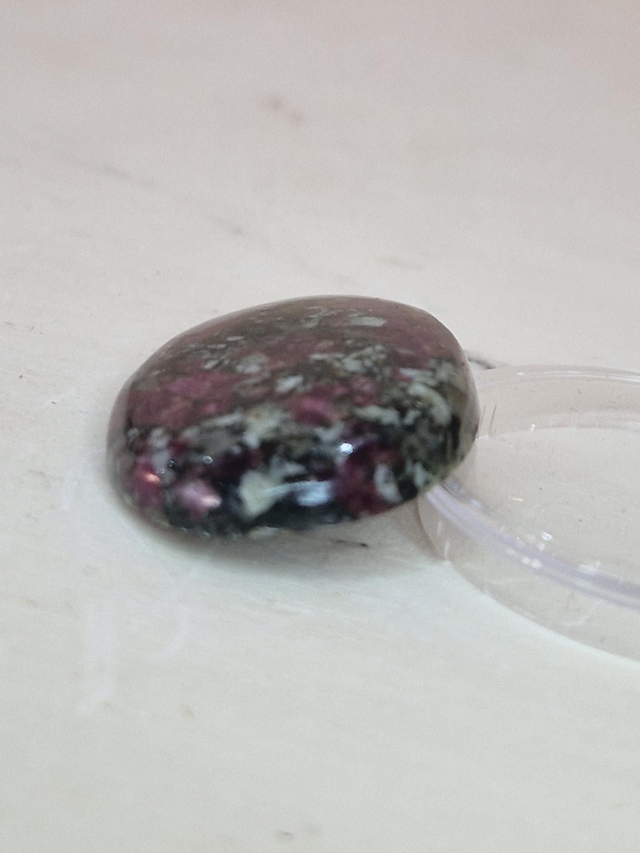 Eudialyte (Sang de Dragon). Tournant, nouvelle orientation. Dépasser deuil, peurs, souffrances, accepter ses propres faiblesses. Nouveau départ, apprendre de ses fautes, résistances. Faire réserves après un épuisement total.