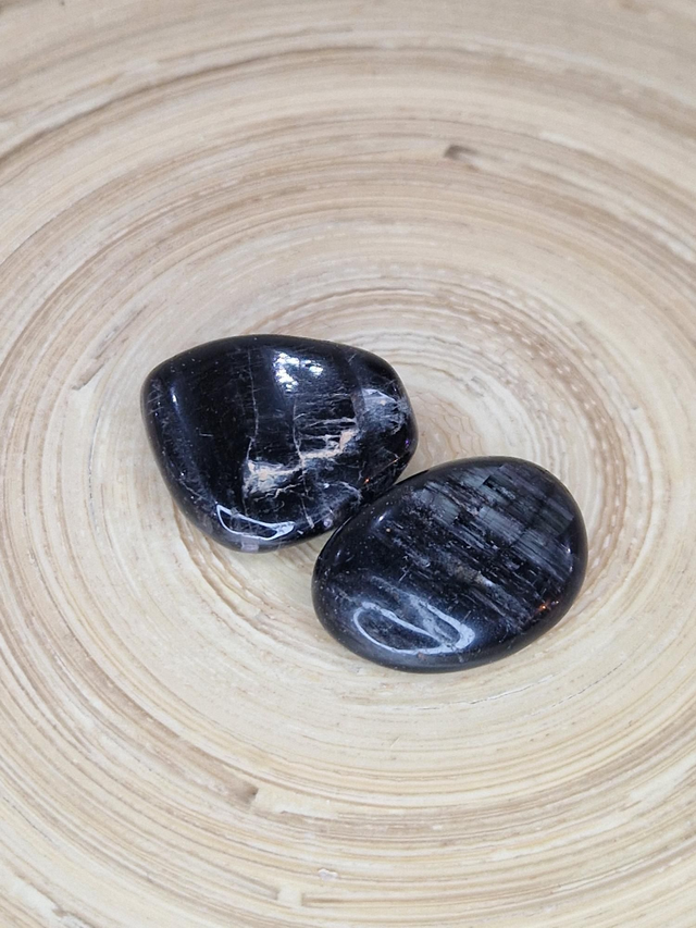 Hypersthène. Equilibre. Procure stabilité entre activité et repos, rend dynamique et équilibré. Aide à accepter la critique et défendre ses convictions. Enlève les tensions, apaise douleur, calme l'hyperacidité gastrique.
