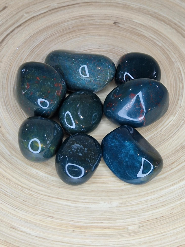 Jaspe Sanguin (Héliotrope). Protection immunitaire. Prise de distance. Aide à garder le contrôle. Fortifie système immunitaire, lymphe, aide en cas trouble du cœur, vaisseaux sanguins, vessie, grippe, rhume, infection, inflammation, pus.