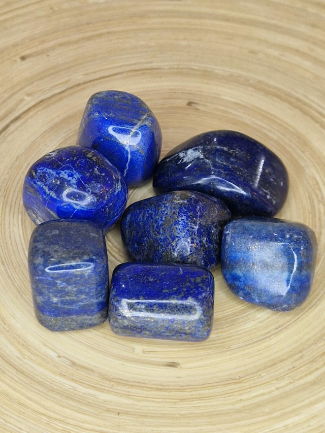 Lapis-Lazuli. Responsabilité pour soi-même. Favorise l'authenticité et aide à conquérir la maîtrise de sa propre vie. Favorise discernement et intelligence, aide à communiquer avec les autres. Abaisse la fièvre et la tension.