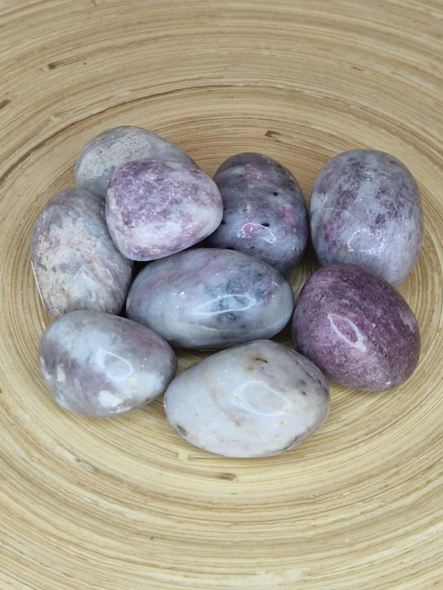 Lépidolite. Marque ses distances. Protège des influences extérieures, procure sensation de paix, apaise trouble du sommeil. Détourne distraction, focalise sur l'essentiel. Atténue mal articulaire, nerveux, sciatique, névralgie.