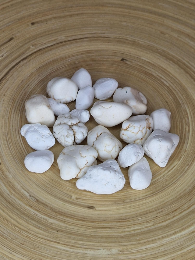 Magnésite. Relaxation. Rend patient, apaise nervosité, peur, irritabilité. Aide l'art de l'écoute. Apaise migraine, mal de tête, crampe, colique, tension, prévient formation de graisse dans les vaisseaux sanguin, infarctus.