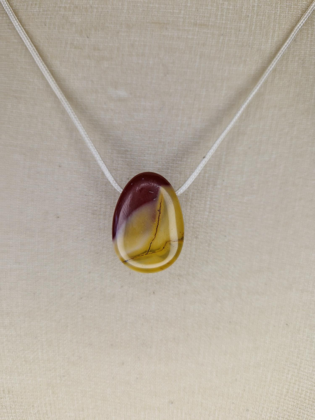 Mookaïte. Expérience. Favorise changement, plaisir, expérience intense. Flexibilité, incite à envisager plus de possibilités et choisir celle qui va. Fortifie rate, système immunitaire, foie, aide purifie sang, cicatrisation.