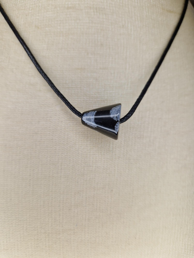 Obsidienne Flocon de Neige. Nouvel élan. Élimine peur, blocage psychologique. Réalisation spontanée des idées. Améliore irrigation, réchauffe pieds, main, favorise cicatrisation.