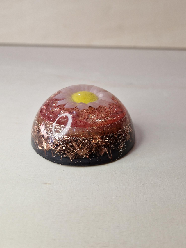 Orgonite. Absorbe le négatif par le métal, le transforme par le cristal en positif et laisse rayonner. Placée où un effet est souhaité : zones où une énergie stagnante et toxique ne veut pas partir ; appareils électronique, routeurs WiFi, ordinateur (à la base, créées pour neutraliser ondes électromagnétiques nocives pour la santé); près lit pour aider sommeil; zones passage; près nourriture; sur le corps ; etc.... Charge en positif : eau; aliments; huiles essentielles; homéopathie; cristaux; pendule, cartes, etc.... Le soleil rend la résine opaque.