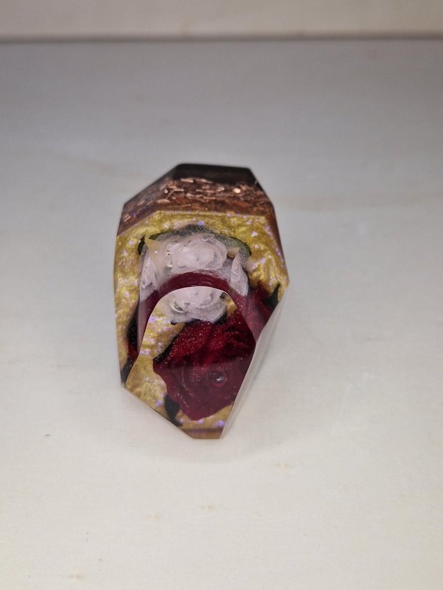 Orgonite. Absorbe le négatif par le métal, le transforme par le cristal en positif et laisse rayonner. Placée où un effet est souhaité : zones où une énergie stagnante et toxique ne veut pas partir ; appareils électronique, routeurs WiFi, ordinateur (à la base, créées pour neutraliser ondes électromagnétiques nocives pour la santé); près lit pour aider sommeil; zones passage; près nourriture; sur le corps ; etc.... Charge en positif : eau; aliments; huiles essentielles; homéopathie; cristaux; pendule, cartes, etc.... Le soleil rend la résine opaque.