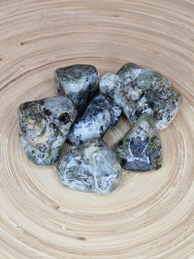 Préhnite. Acceptation. Facilite acceptation de soi et des autres. Aide accepter vérité désagréable, favorise capacité d'assimilation. Favorise détoxication matière liposoluble, stimule métabolisme graisseux, processus renouvellement.