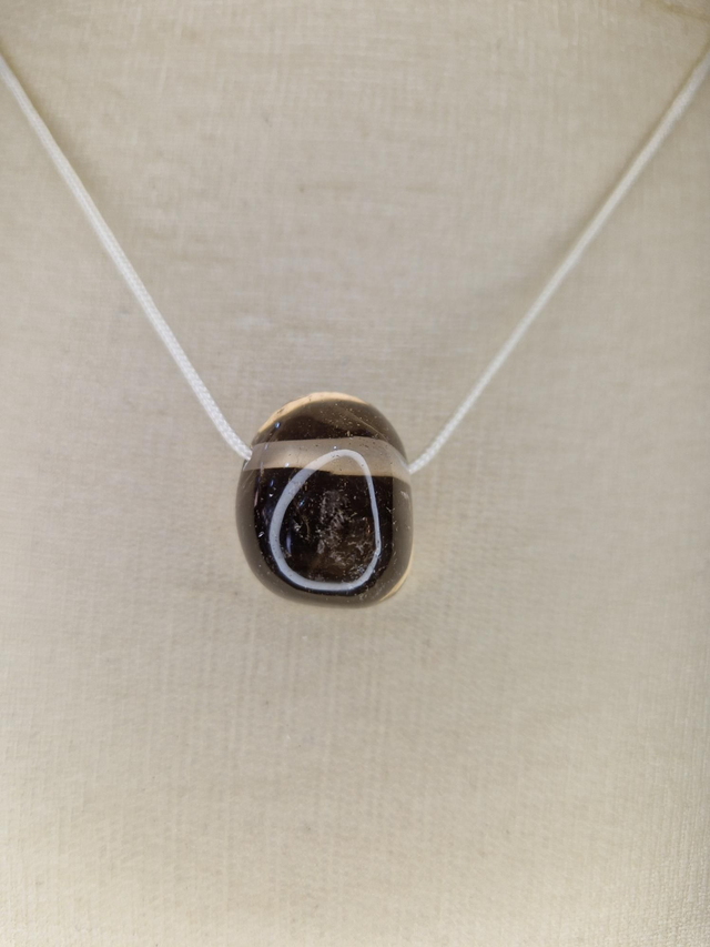Quartz fumé. Relaxation. Diminue tension, apaise stress. Favorise réflexion réaliste et pragmatique. Aide lors maux de tête, tension nuque, dos, atténue douleur, fortifie nerf.