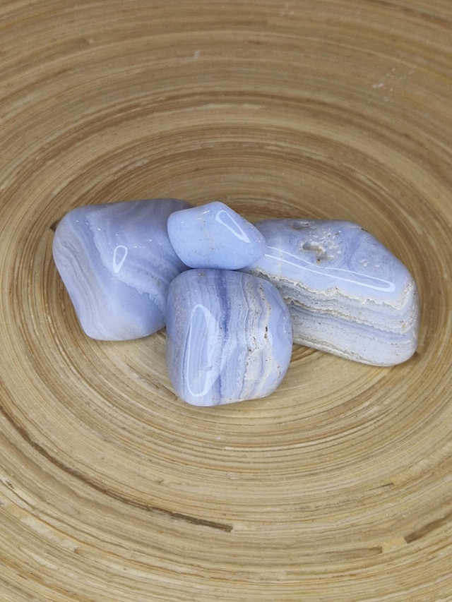 Calcédoine. Présence d'esprit, communication. Acceptation des situations nouvelles. Calme intérieur, attention détendue. Atténue le diabète stimule la sécrétion de lait chez les femmes allaitant, apaise la sensibilité météorologique.
