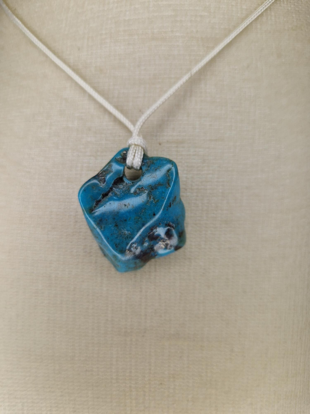 Turquoise. Destin. Equilibre, stimule, protège des influences extérieures. Identifie causes du bonheur ou malheur et les maîtrise. Aide lors épuisement, hyperacidité, rhumatisme, goutte, trouble gastrique, crampes.
