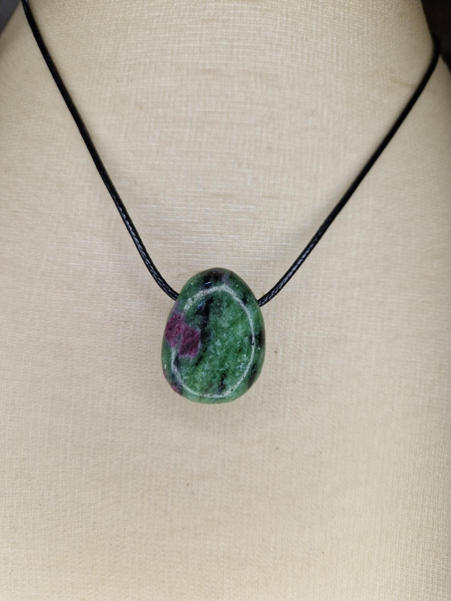 Zoïsite avec Rubis. Dynamique, régénération. Fait resurgie sentiments enfouis, stimule puissance sexuelle. Favorise engagement créatif. Désacidifie, régénère et stimule fécondité, trouble rate, prostate, testicules, ovaires.
